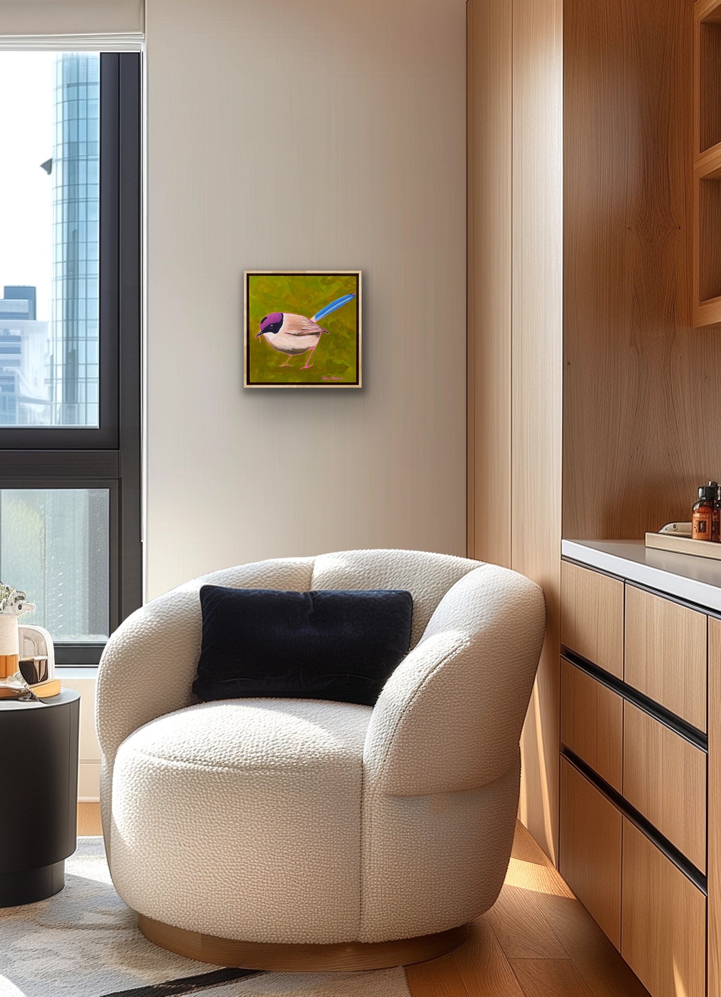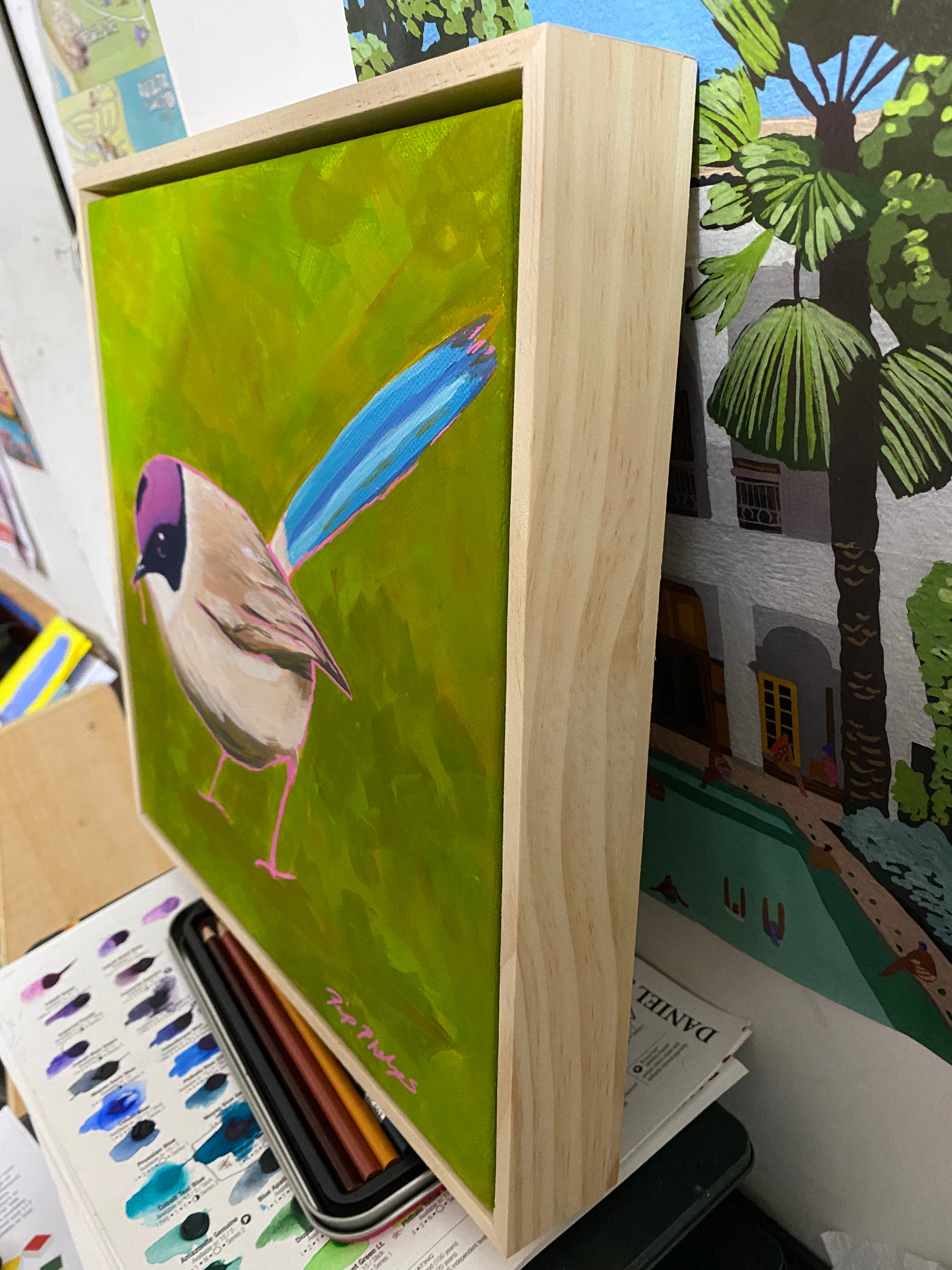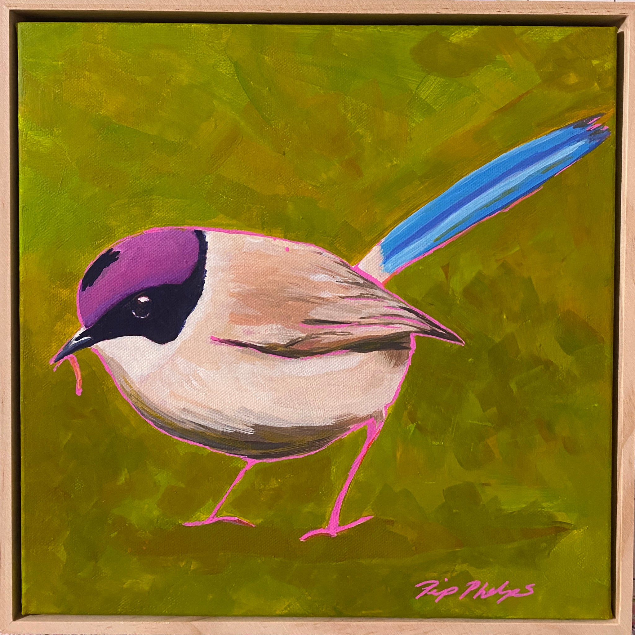 Archival acrylic on gallery wrapped stretched canvas with free pine frame